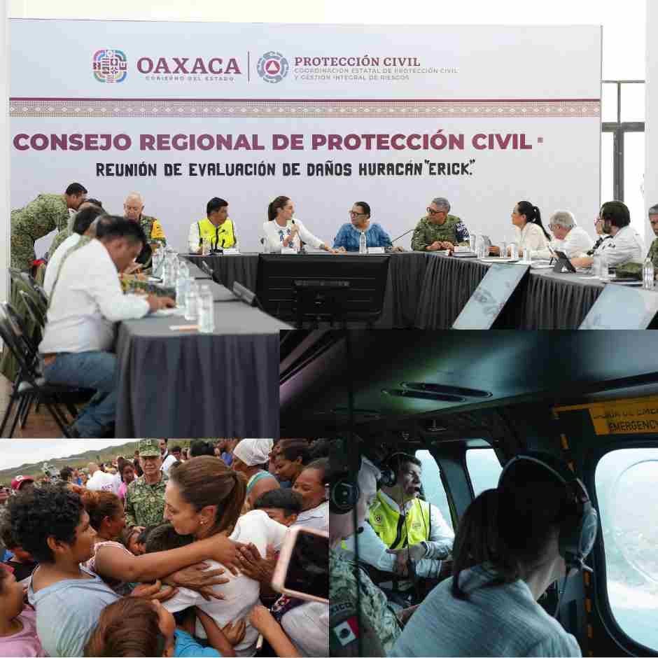Desde Santiago Pinotepa Nacional, Claudia Sheinbaum encabezó la supervisión de daños causados por el huracán Erick. Anunció acciones inmediatas en tres frentes: