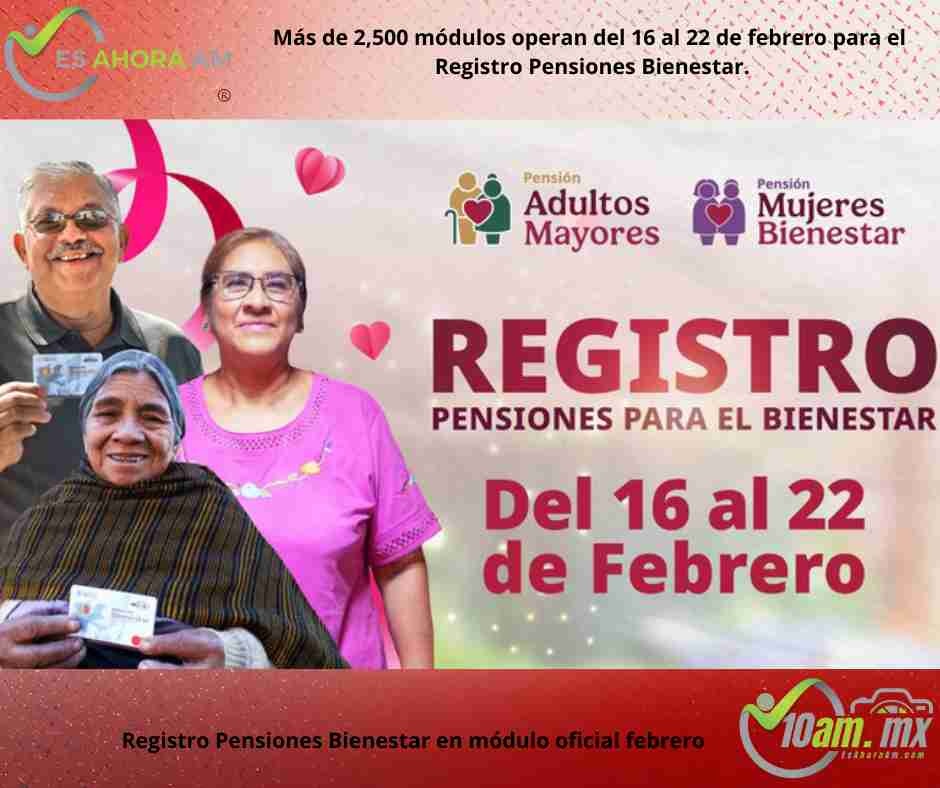 La secretaria de Bienestar, Ariadna Montiel Reyes, informó que del 16 al 22 de febrero se realizará el registro a la Pensión para el Bienestar de las Personas Adultas Mayores y a la Pensión Mujeres Bienestar dirigida a mexicanas de 60 a 64 años.